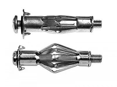 Составные дюбели, состоящие из резьбового стержня и цанги. Последняя имеет направляющую и резьбовую гильзу, оснащена складывающимися распорками. Метиз монтируется в следующем порядке: